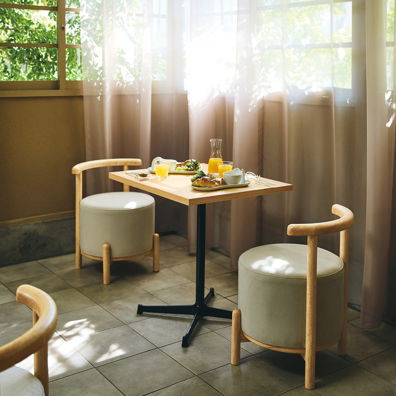 ローバックながら、ゆったりとしたシートで快適な座り心地。コロンとしたフォルムが愛らしい、カフェライクな一脚です。