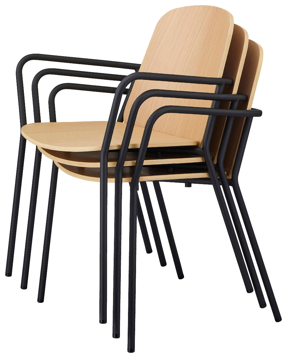 背と座:オーク柾目突板成型合板 フレーム:スチール 粉体塗装